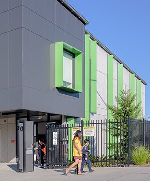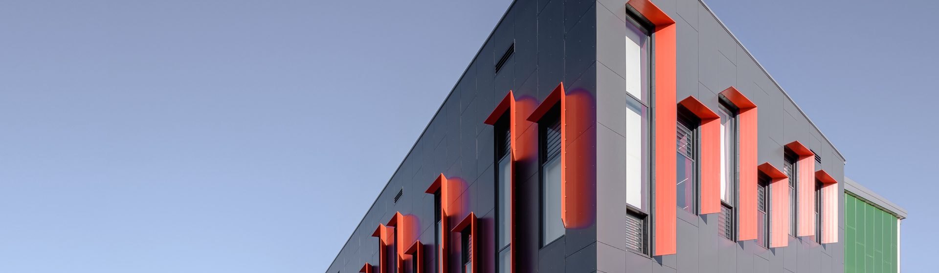 The blue grey cladding colour evokes a sense of professionalism and suits cityscapes and urban environments.
