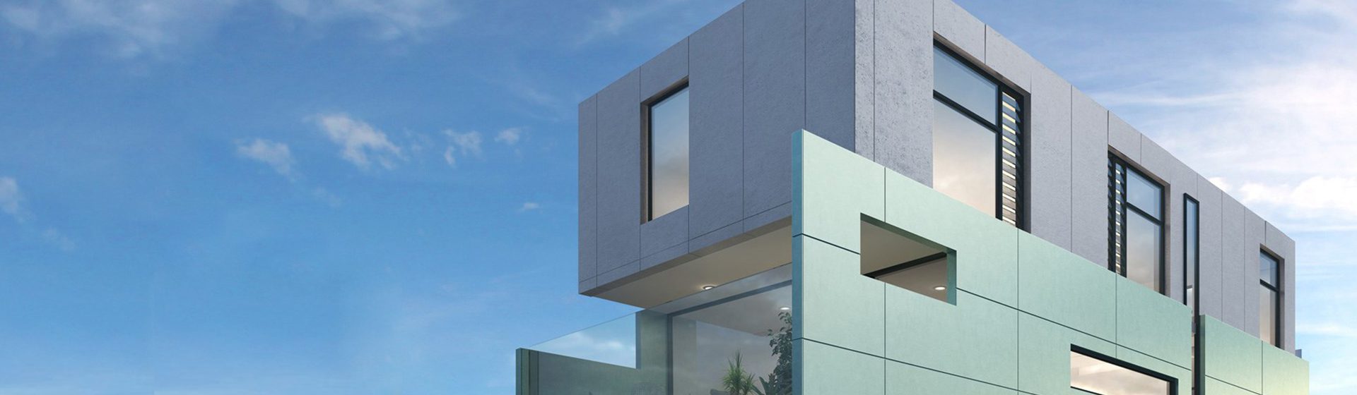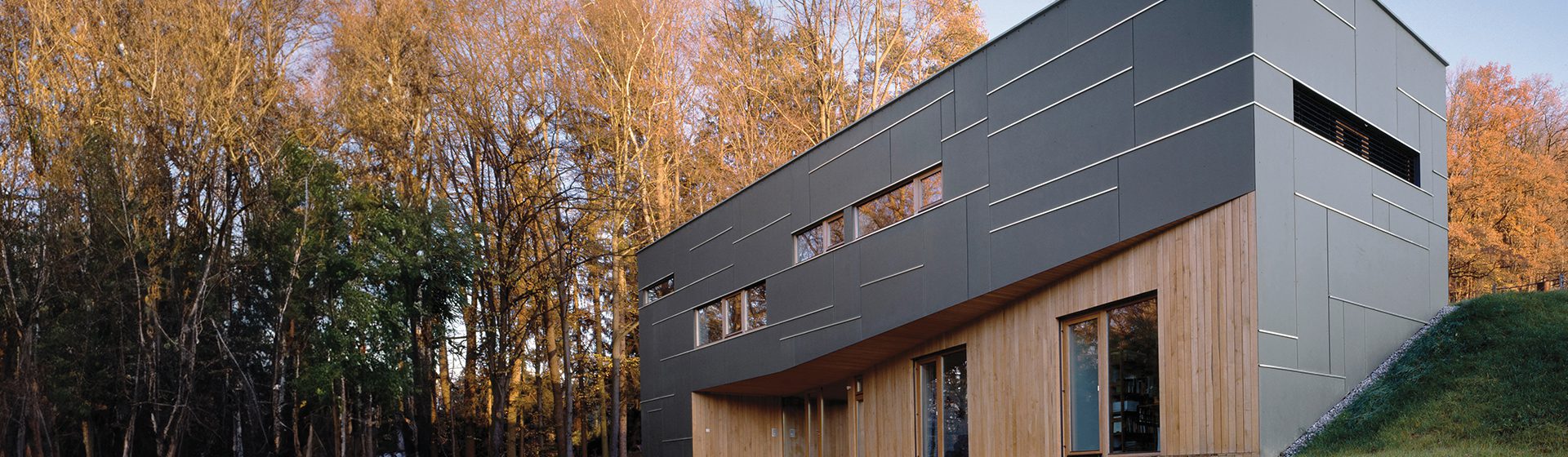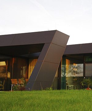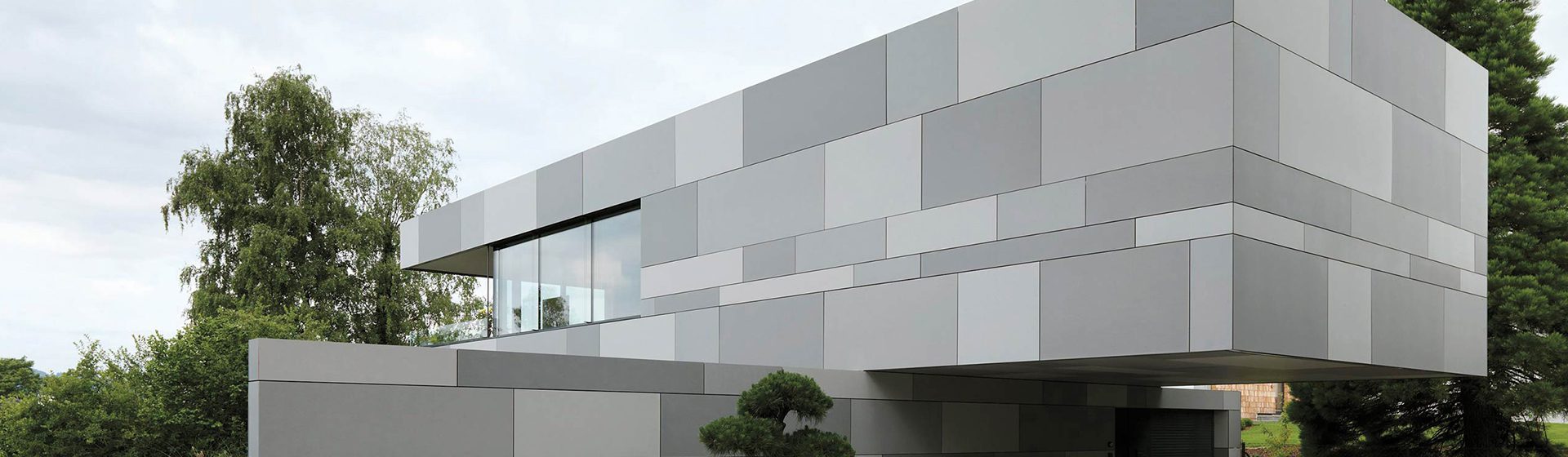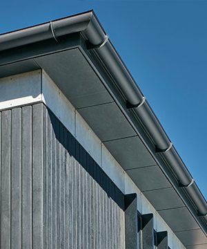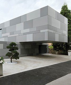 Cemintel® Surround™ Blueish cladding is perceived as a neutral grey with blue tones. A bluish grey, it has a cool, serene effect. The colour is reminiscent of steel beams.