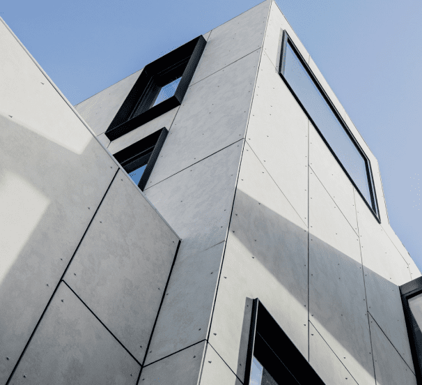 The natural beauty of concrete and durability of fibre cement combine together spectacularly with Barestone Original Cladding. This precise concrete style fits well with modern and industrial building designs.