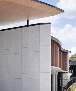 The warm tones and light greys in Barestone Original easily compliment other building materials. Especially warm timber features (Like Territory Woodlands Teak and Cedar Cladding).