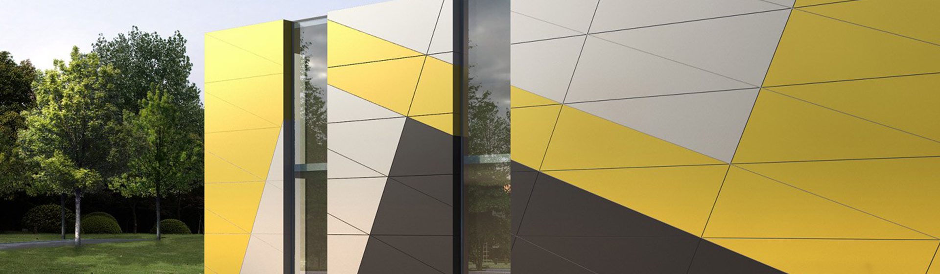 Using express joints and a top hat system, it provides a familiar installation method for commercial cladding, enabling the creation of dynamic geometric patterns with playful colour variations.
